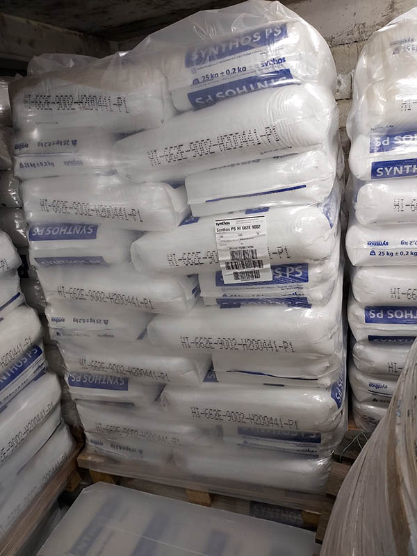Original natur PS TRINSEO ali SYNTHOS. Zaloga cca 30t. Pakirano v vrečah po 25kg, 1375 kg na paleti. Cena 1.9€/kg
